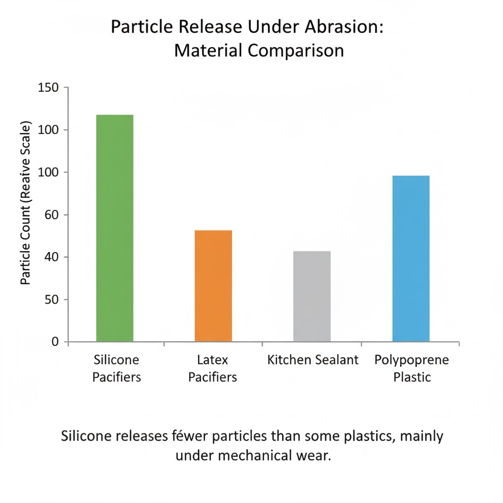 Pacifiers: In controlled tests that simulate mechanical wear, silicone pacifiers released nanoparticles (mean sizes around ~130–180 nm depending on method). Boiling alone didn’t shed detectable particles, but pre-boiling increased subsequent release under abrasion. Latex pacifiers also shed particles, which were acutely toxic to Daphnia magna—silicone particles were not in that assay.