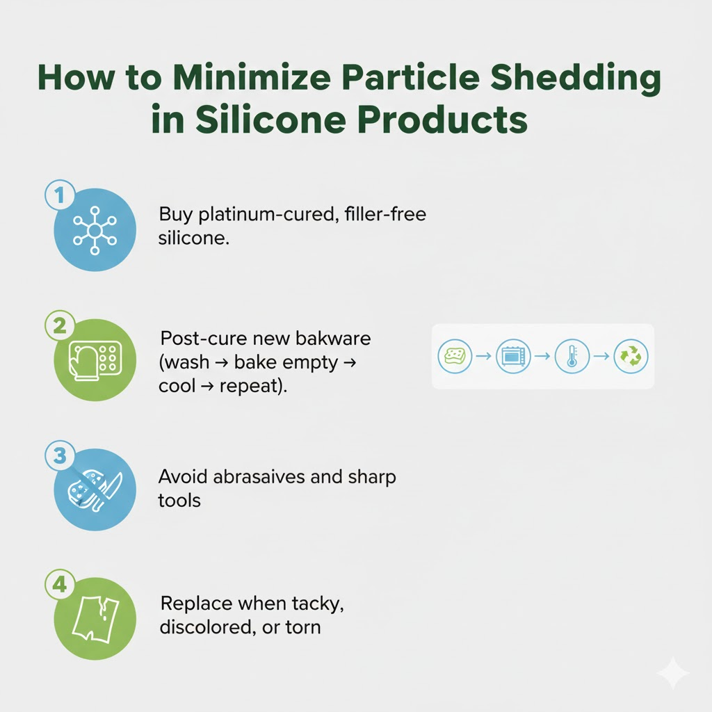 For baby items, follow the maker’s boil/steam sterilization instructions and inspect frequently. The pacifier study suggests boiling doesn’t itself shed particles, but post-boil abrasion can increase release—so replace at the first signs of tearing, stickiness, or whitening.