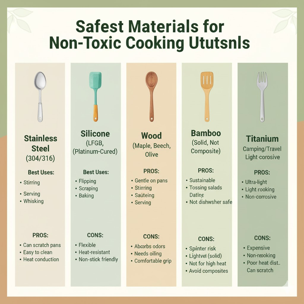 At the same time, safer choices absolutely exist. Stainless steel, well-made wood and bamboo, and high-quality silicone (within its limits) can deliver years of calm, reliable cooking without the chemical second-guessing.