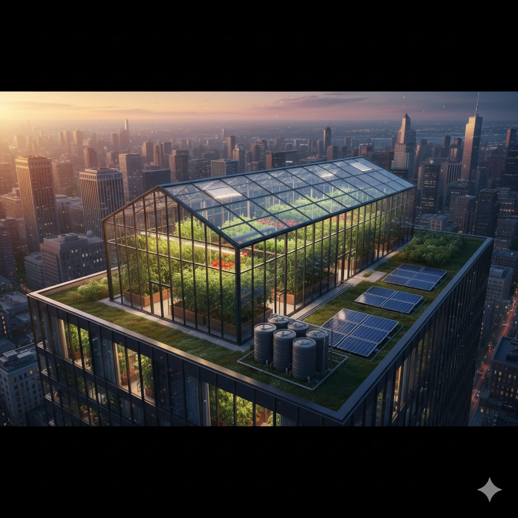 A rooftop greenhouse is a food-growing structure purpose-built on the roof of an existing or new building. Unlike simple green roofs or open rooftop gardens, it’s an enclosed, climate-controlled space designed to produce high-quality crops near consumers while exchanging energy, water, and even CO₂ with the host building. Properly designed, the greenhouse and building “help” each other: the greenhouse can temper the roof, harvest rainwater, and use waste heat; the building benefits from insulation and reduced stormwater runoff. This integrated approach—often called an integrated rooftop greenhouse (i-RTG)—has been shown to improve overall energy performance and resource efficiency.