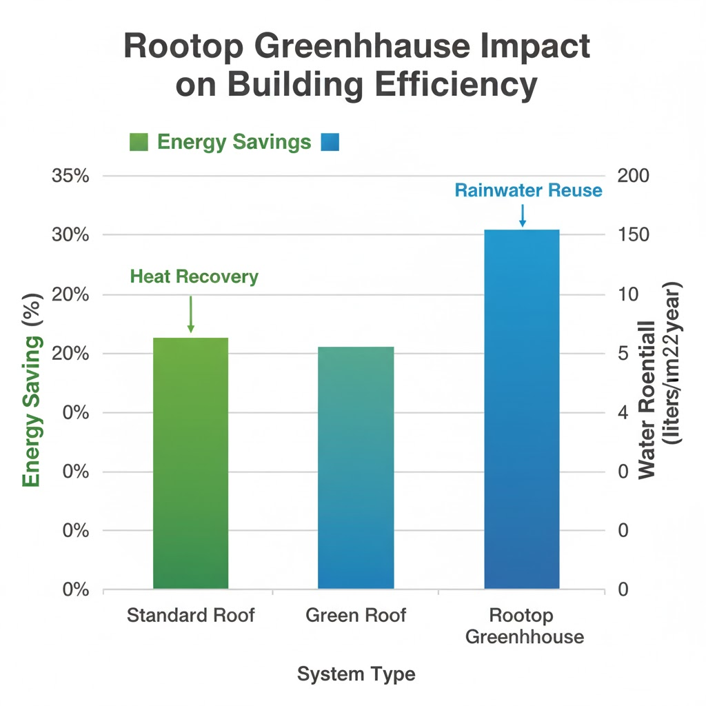 By sharing heat, air, and sometimes ventilation with the host building, rooftop greenhouses can shrink heating loads in winter and reduce solar heat gain through the roof in summer. Studies of building-integrated greenhouses show meaningful energy co-benefits when ventilation and heat exchange are designed together. These efficiencies, coupled with local sales and premium freshness, improve operating margins; added urban green amenities can also enhance property value.