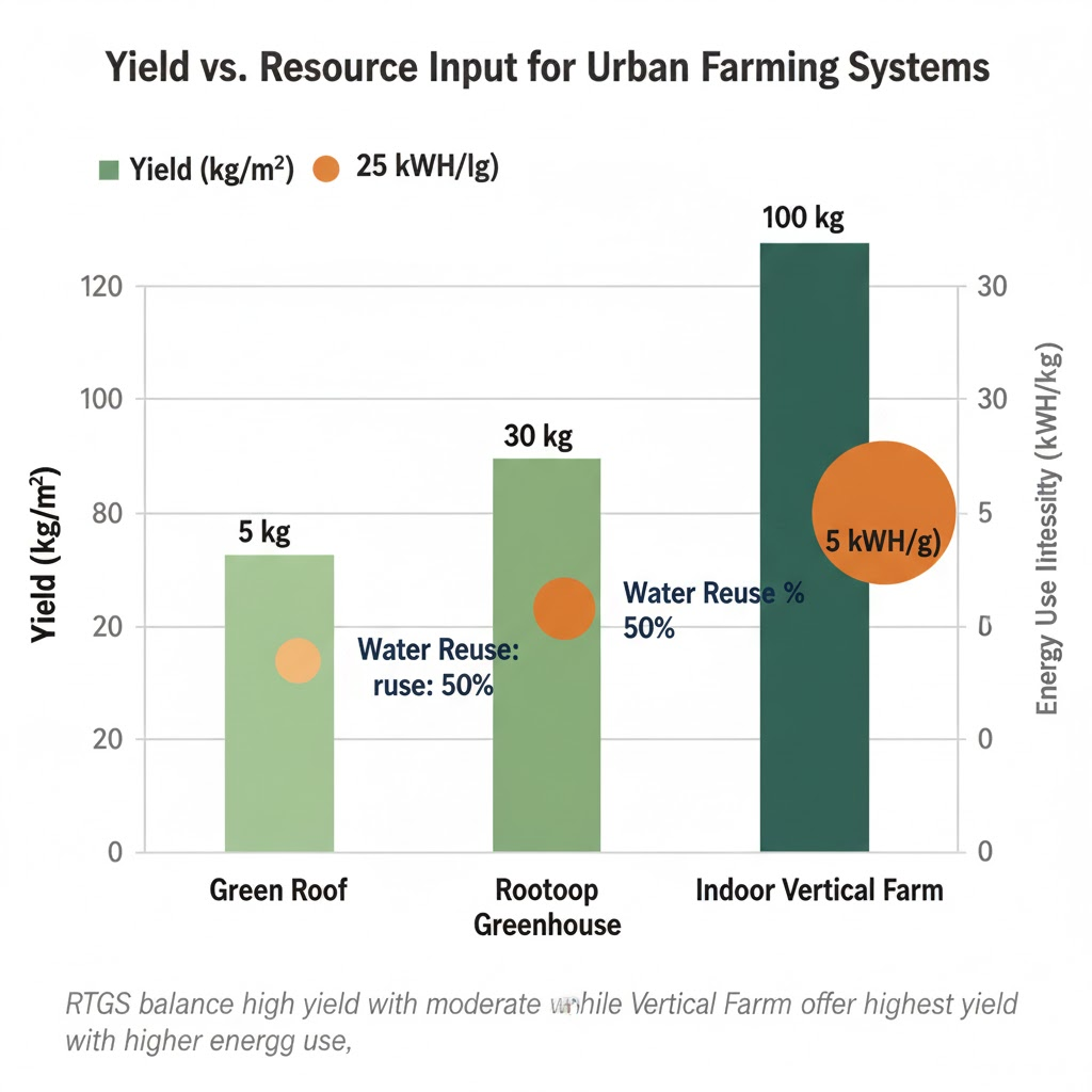 Comparison (summary): RTG vs Green Roof vs Indoor Vertical Farm